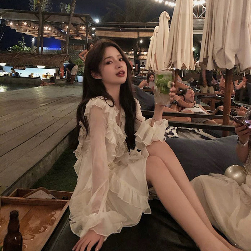 La robe blanche bohème en dentelle illustre la symbiose parfaite entre l’élégance intemporelle et le charme du style boho. Le choix de la couleur blanche évoque une pureté inégalée, tandis que la dentelle apporte une touche de sophistication indéniable. Chaque couture de cette tenue a été pensée pour mettre en valeur à la fois simplicité et raffinement.