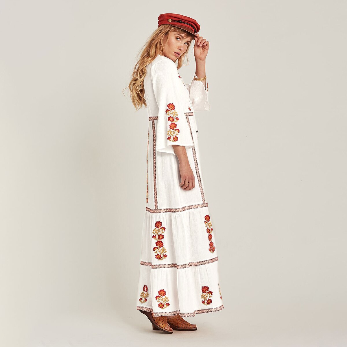 La robe blanche bohème longue été incarne des valeurs de paix, liberté et égalité, des principes chers au mouvement boho. Véritable ode à l’acceptation de soi et des autres, elle offre une apparence à la fois accessible et élégante, équivalente à celle des grandes dames du monde. Ce contraste soigné se traduit par l’alliance de textures simples et de détails chics, typique du style bohème chic. Pour parfaire votre tenue, pensez à explorer notre sélection de chaussures qui ajoutent une touche de glamour sans nuire à l’harmonie bohème. La matière est légère mais d’une qualité premium, faisant de cette robe une pièce polyvalente, idéale à porter en toute saison, que ce soit été, automne, hiver ou printemps.