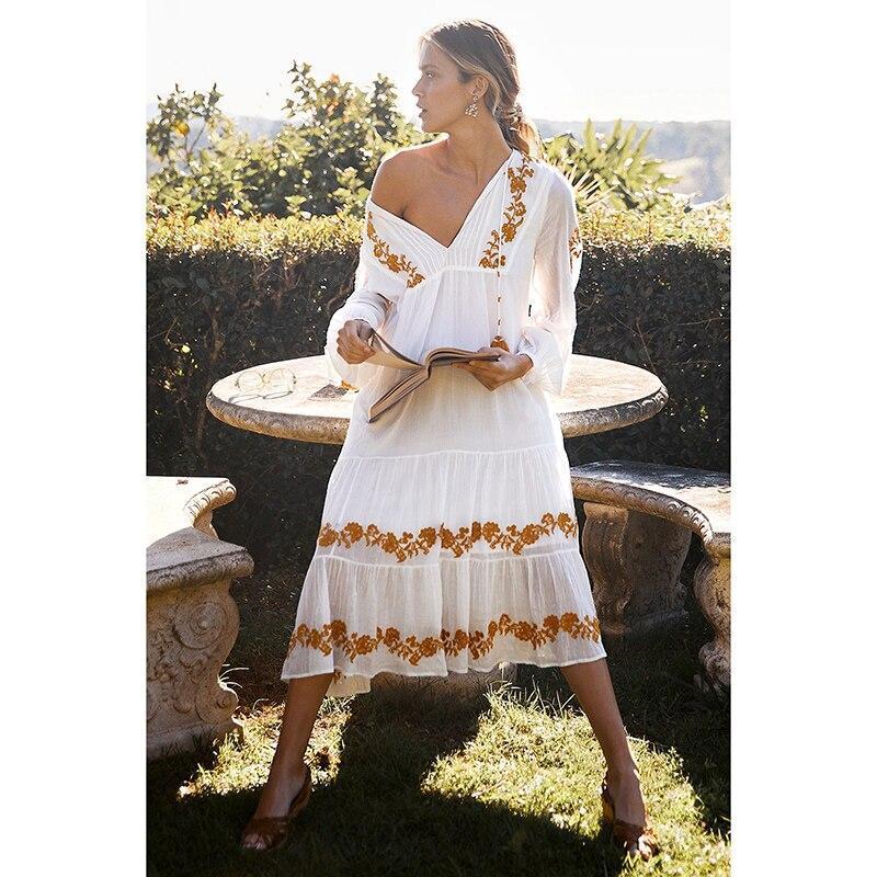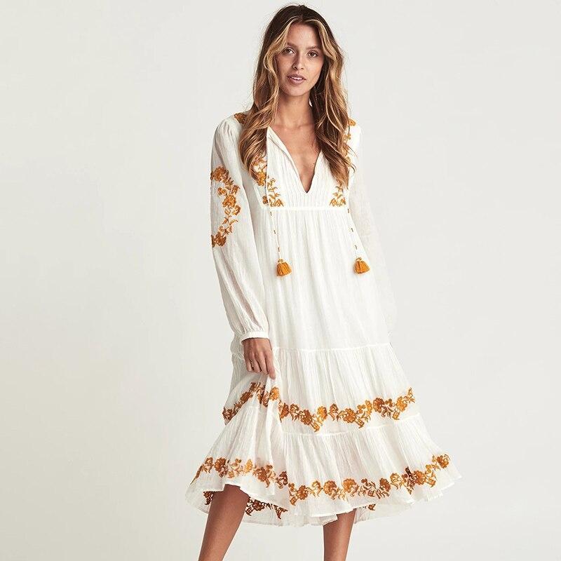 Évoquant la pureté et l’élégance, cette robe blanche bohème longue est une véritable déclaration de style. Parfaite fusion entre l’innocence du blanc et l’audace du style hippie, elle vous offre une apparence libre et envoûtante.