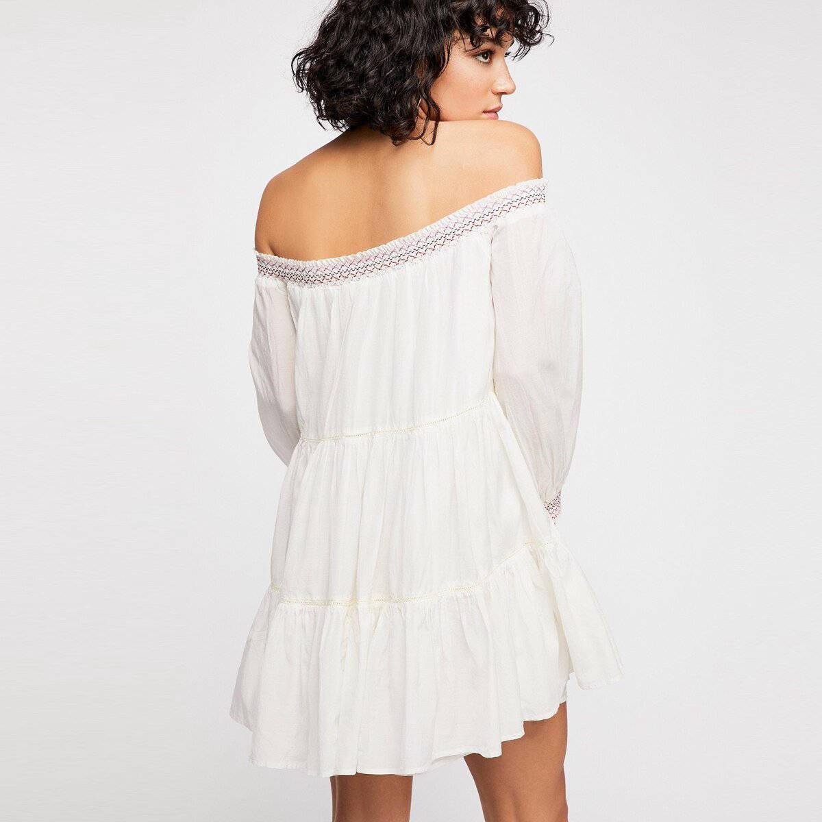 Avec cette robe blanche bohème, libérez votre esprit créatif en jouant avec des accessoires colorés et affirmez votre romantisme tout en restant neutre.