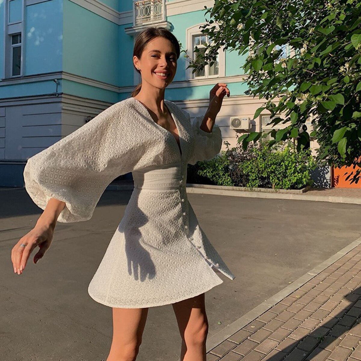 La pureté du blanc rencontrée par l’élégance d’une mini robe bohème.
